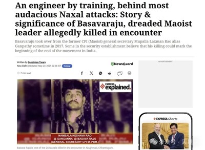 印度共产党(毛主义)的领导人南巴拉·克萨瓦·拉奥(Nambala Keshav Rao)同志(又称Basava Raju,巴萨瓦拉吉)于5月21日在恰蒂斯加尔邦阿布吉哈迈德的遭遇战中牺牲。 根据印度媒体的报道,巴萨瓦拉吉同志出生于安得拉邦的普通农村,在瓦朗加尔的国家理工大学(National Institute of Technology)获得本科技术学士学位,该学校曾是印度毛主义运动的源头。学生时代他就被毛主义吸