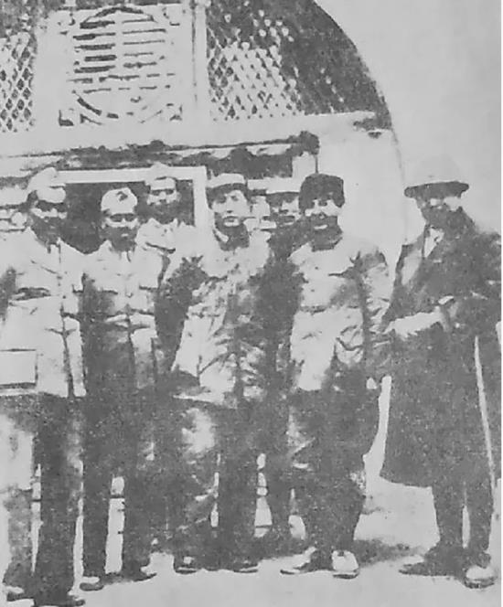 1939年3月15日,毛泽东在延安凤凰山麓会见印度援华医疗队时合影。左二为柯棣华