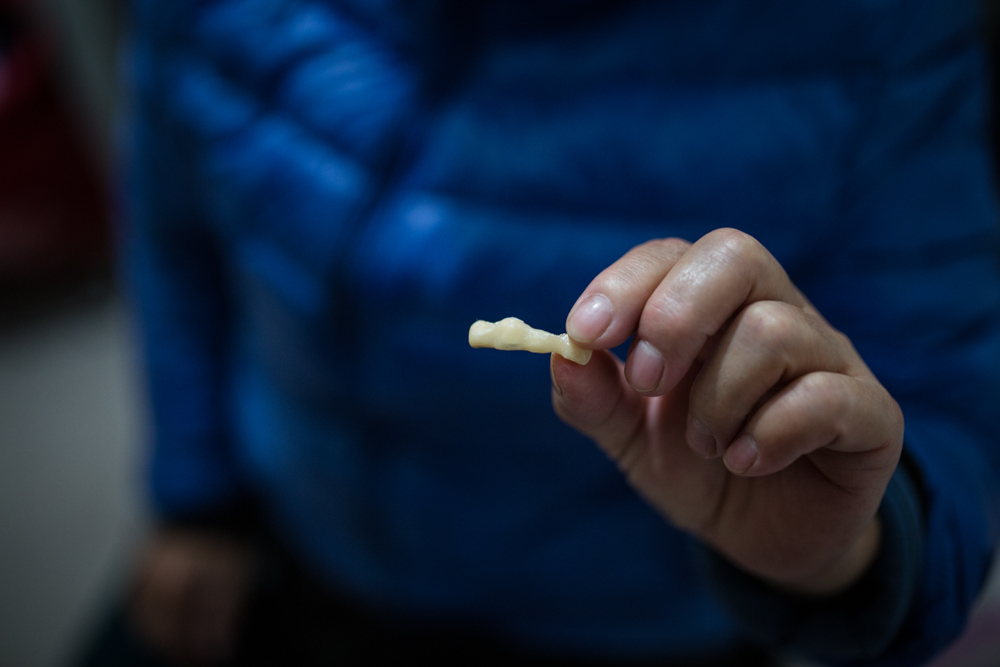 出事当天,雇主还是很积极地把她送去医院治疗,垫付了医药费。换三颗牙要花上万块,雇主也就不过问了。这是摘下来的假牙模。
