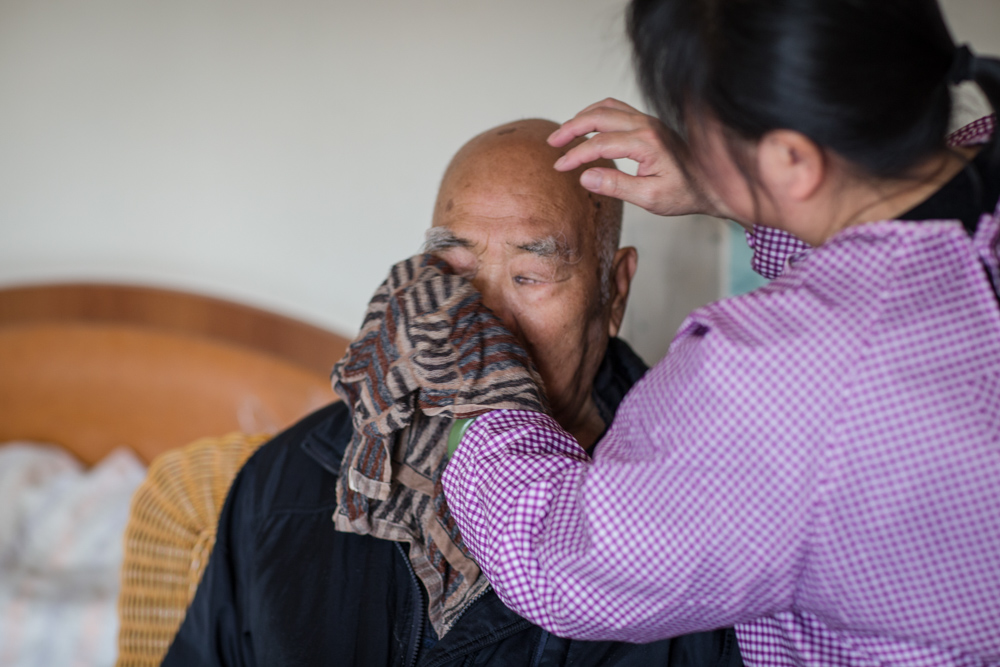 雇主是80多岁的老人,生活不能自理。王金枝除了打扫卫生和做饭,还要给老人洗脸洗脚,喂药喂饭。王金枝的父母和雇主家老爷子年龄相当,这也让她时常想起老家的爹妈。天气好的时候,她会帮老人剃剃胡子。