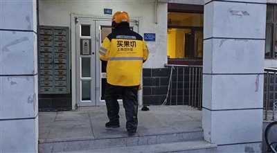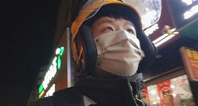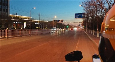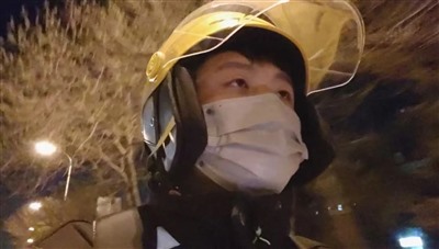 图为三月底笔者在天津送外卖途中
