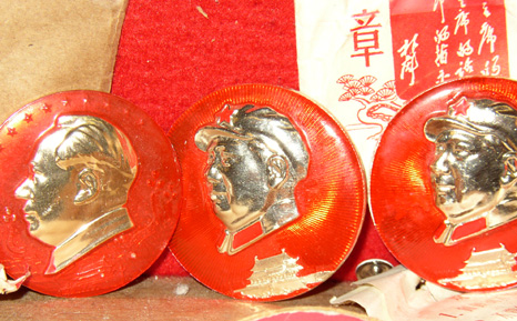 只要一进入这个书店,映入眼帘的就是毛语录、文选、铜像、像章,以及印有毛泽东像的体恤等