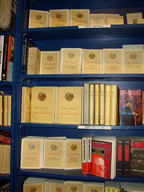 我曾经做过一期关于纽约革命书店的电视访谈节目,他们的店主何西向我介绍过,书店的书种类很多。用何西女士的话说就是凡是符合革命理念的,帮人民说话的书都要卖,其中毛泽东的著作占很重要一部分。