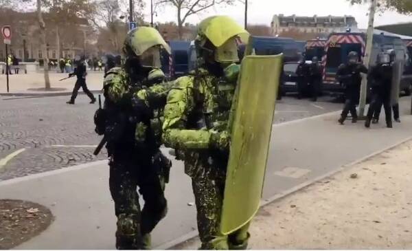 一个比较引人注目的现象是,外省负责维持治安的警察表现得相当节制,因此警民关系并未出现紧张趋势。比如12月1日北方城市圣布里约(Saint Brieu)的示威群众去封堵装修联锁店勒鲁瓦梅兰(Leroy Merlin),警方迅速赶到,双方对峙了一阵,结果警察撤离,示威群众报以掌声。