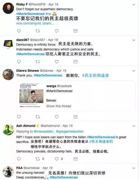 今年4月,有一条关于300多人为了“印尼民主”牺牲的推文登上了推特热搜。