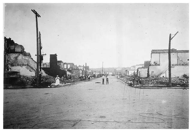 有“黑华尔街”之称的格林伍德区,一夜之间被夷为平地,1256间住宅被焚毁,215处房屋遭抢劫,35个街区被破坏,估计300余人丧生,8000余人受伤。