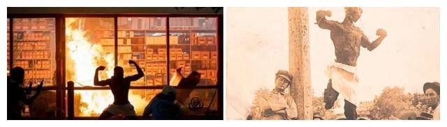 2020年弗洛伊德事件引发黑人示威(左)1916年黑人私刑杰西·华盛顿事件(右)
