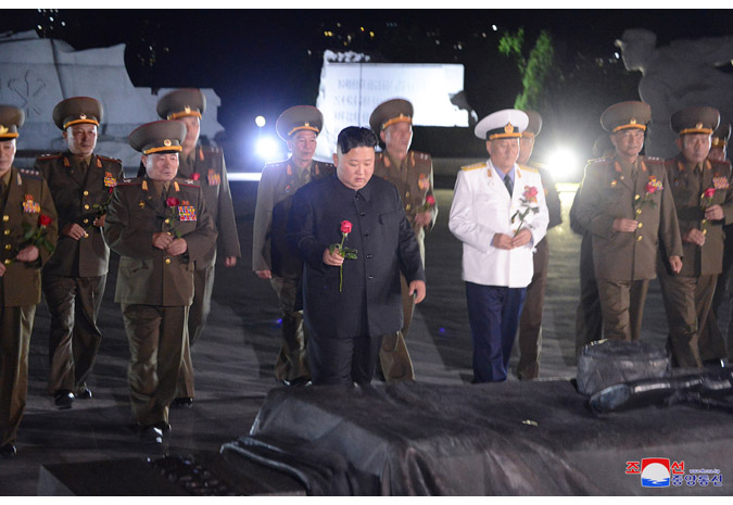 金正恩向烈士墓献花,向以宝贵生命保卫祖国的英雄表示崇高敬意。