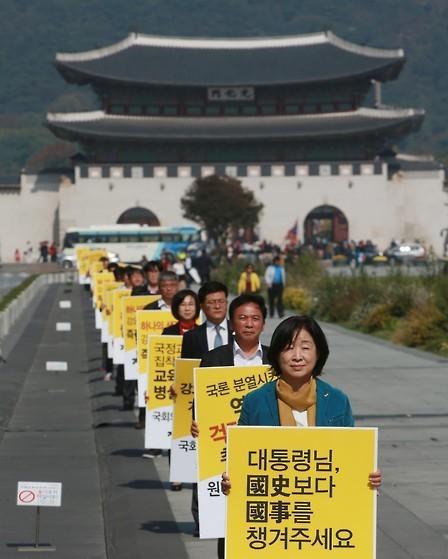 "除了在生理上是女性之外,我和朴槿惠真的没有什么共同点。"在反对朴槿惠政权的集会中,沈相奵参加了首尔的每一次反朴槿惠周末集会,她和她的同事们是一些最早和最强烈的朴槿惠下台的支持者。