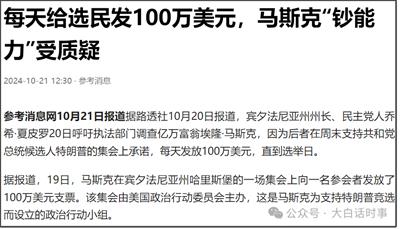 马斯克甚至使用钞能力,直接给摇摆州选民发钱。