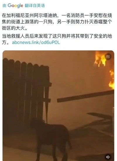 就在大家说“没关系,他们会救出一条狗”的时候,美国人真的从加州山火中救出了一条狗,还救出了一面美国国旗……大家是懂美国的,言出法随!
