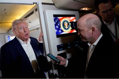 当天下午,特朗普结束体检,乘坐“空军一号”离开里德国家军事医疗中心。