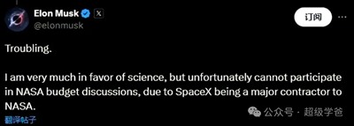SpaceX本身就是NASA的白手套,是NASA最大的承包商,削减NASA的经费,就等于削减SpaceX的经费。消息传出后,马斯克表达了不满,这是令人不安的坏消息。