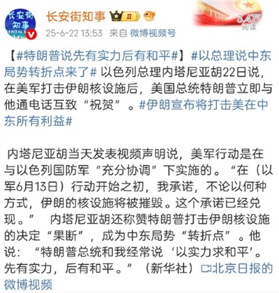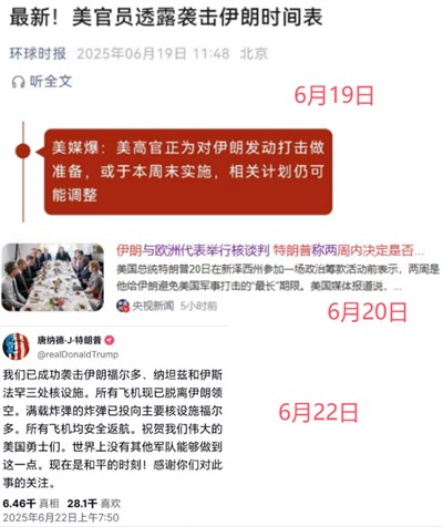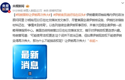 但特朗普不管这个,直接发表全国电视讲话,表示通过“大规模精确打击”,伊朗的核设施已经“完全彻底摧毁”,取得了“惊人的军事成功”。