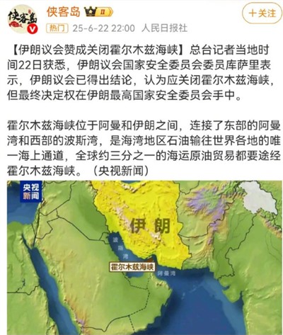 伊朗议会已经投票赞成关闭霍尔木兹海峡,切断中东的原油运输通道,已经送交伊朗最高国家安全委员会进行审批。
