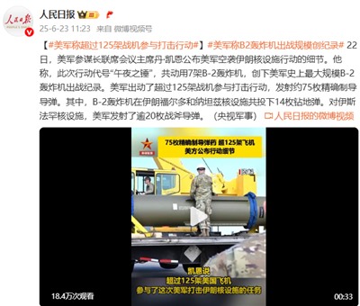 6月22日,美军参谋长宣布已成功空袭伊朗核设施,行动代号“午夜之锤”。