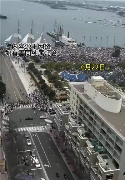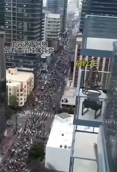 同日,美国加州爆发大规模示威游行,游行民众称美国袭击伊朗核设施,置美国安危于不顾,要求特朗普下台。