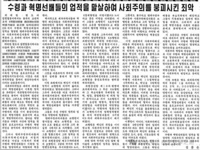 1996年1月16日《劳动新闻》第6版伟大领导者金正日同志在经典著作《尊崇革命前辈,是革命者崇高的道德情义》中,明确揭露了现代修正主义者与社会主义背叛者抹杀领袖和革命先辈功绩的恶毒阴谋及其后续影响。伟大领导者金正日同志指出:“现代修正主义者和社会主义的叛徒诬蔑领袖和革命前辈,抹煞他们的业绩,导致了社会主义的变质和崩溃。”完成社会主义大业,关键在于捍卫、坚守并