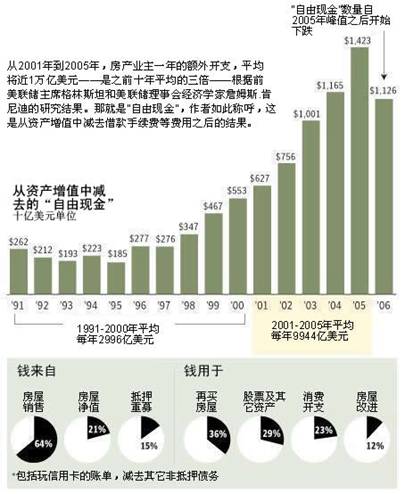 [美国房产业主收回的流动性,1991与2006/来源-华盛顿邮报 - Alan Greenspan & James E. Kennedy]