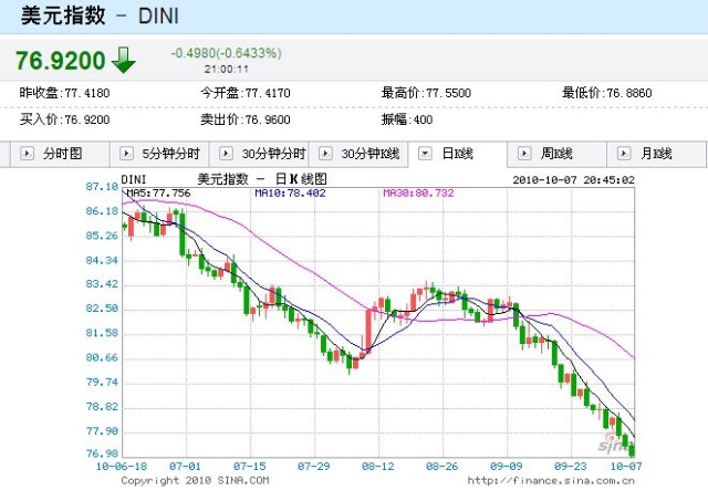 昨晚欧元汇率一度突破1:1.40美元,英镑则1:1.60美元;美元指数继续顺势而为,一度跌破77,达到76.8860,看来离本次颓势终点站不远了。国际期货市场许多大宗商品价格不断创出历史新高,美国刚刚通过的控制金融及衍生工具风险的决议,似乎也只是纸上谈兵。因为美元汇率低迷,应有不少先知先觉的热钱流入美国(美元指数4个月来下跌了15%,美元兑其它国际主要货币也大幅下跌12-22%),这也就比较好解释在美元持续走软的情况下,道琼斯指数却持续走高。日本外汇储备创新高达11095亿美元,月前日本干预了外汇市场,抛出2万亿日元购入233亿美元(充分体现了货币印钞权,日元不是纸,人民币现在还不能体现这一点)。