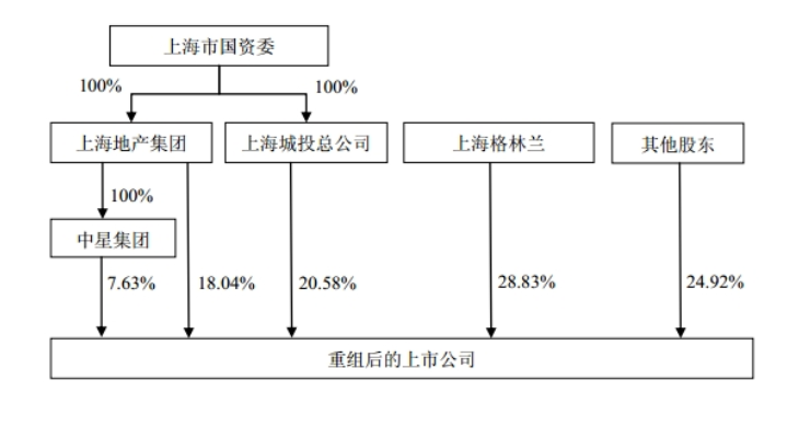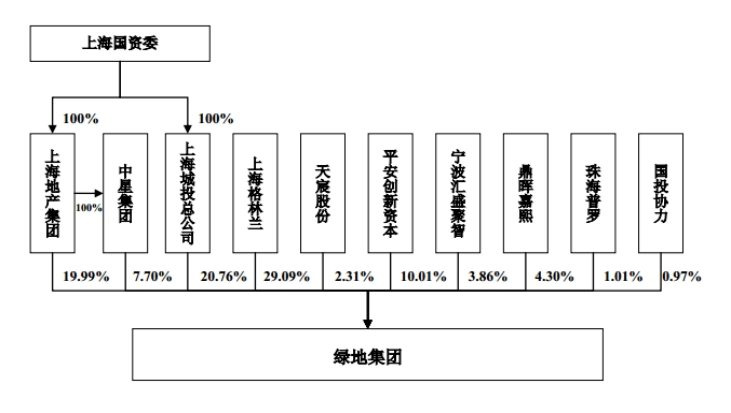 二、下图为重组后的新绿地集团的股权结构,上海格林兰作为员工持股平台,持有重组后新公司28.83%的股份。