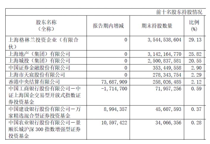八、根据绿地控股(6.770, 0.11, 1.65%)2019年半年报,其主要股东期末构成如下,其中上海格林兰的持股比例由于二级市场增持等原因已升至29.13%: