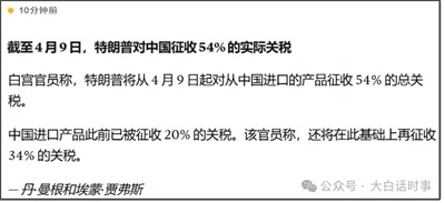 有人拿DeepSeek的回答说,这次加的34%,是包含之前加的20%,所以今年加的关税是34%,不是54%;
