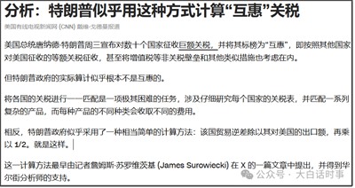 之前美国媒体还一堆在那说特朗普会按照什么方式去设立对等关税,因为每个国家不同商品关税都不一样,要确立各国的平均关税税率是很困难的事情。