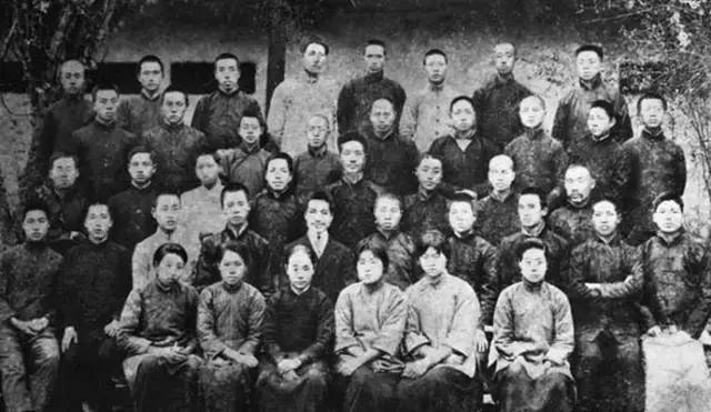 △1919年11月16日,新民学会部分会员在长沙周南女校合影。后排左四为毛泽东。