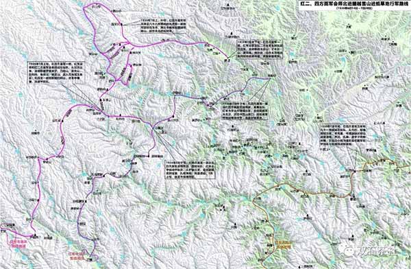 红二、四方面军会师北进示意图