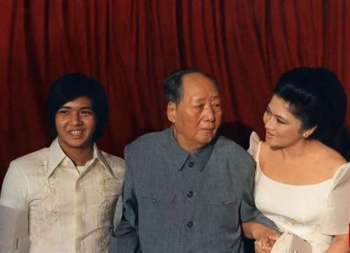 晚年毛泽东的外事活动非常繁忙,从上世纪70年代起,外国首脑大凡踏上中国的土地,都会有个急切要求:拜会毛泽东。毛泽东身体日衰,外宾求见的要求日盛。图为1974年9月,毛泽东会见菲律宾总统马科斯夫人伊梅尔达和她的儿子。
