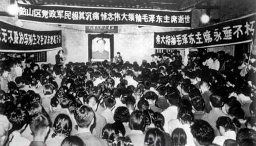 1976年9月9日昭通人民沉痛悼念伟大的领袖和导师毛泽东。