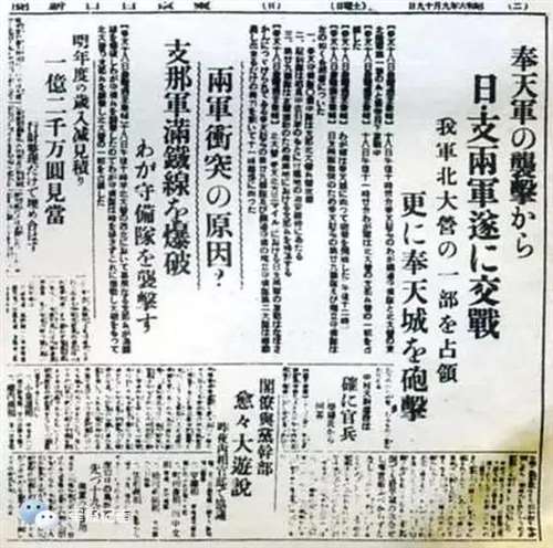 9月19日,东京《日日新闻》以头条消息报道柳条沟事件。