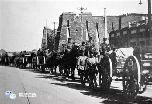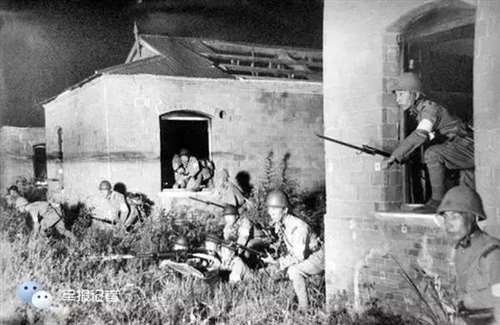 1931年9月19日凌晨,日军炮火轰击北大营三小时后,有准备的日军步兵冲进北大营。日军左胳膊以白布条为记号。