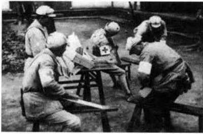 在连队成立抢救组,通常5-7人,以连副指导员为领导,卫生员或卫生战士为骨干,由文教、文书、炊事员、理发员等组成。抢救组的任务:负责火线伤员的抢救,对伤员进行止血、包扎、临时固定骨折、搬运至隐蔽地点,并组织后送。有了连队抢救组,卫生人员可以集中精力救护头、胸、腹部伤员,从而降低了牺牲率。对伤口的初期处理,需要能做到在两、三天内不须换药的准备,以应对因运输时间长带来治疗不及时引起的指战员伤亡。