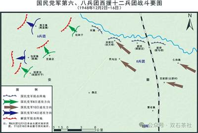 据参考消息称:宋希濂兵团已到浦口,正向蚌埠开进,蒋纬国亦到蚌指挥战车向北进犯。我们最担心对李延年阻击兵力不能胜任(因六纵王江部自战役以来,伤亡七千余人,骨干太弱,人数不充),万一出乱子,势必影响对黄维之作战。除已抽出渤纵一个师南去参加阻击李、刘兵团外,已令江淮两个旅及先纵(谭启龙所率之先纵尚在淮南路西未能渡江)积极在浦蚌段行动,打击敌人后方,以箝制李、刘、宋兵团。但据密息,杜聿明曾向蒋建议,从西安、台湾及甘肃抽调几个军空运蚌埠,组成一个兵团,与李延年、刘汝明、宋希濂合股北援,才能挽回危局等情。目前中野及华野已分成三个战场作战,兵力均感不够,不论杜之建议是否能实现,即宋希濂兵团赶到,则南线阻击李延年、刘汝明之部队即可能出乱子。为此,我们建议再由此间抽出一部分兵力,以求先解决黄维。[6]