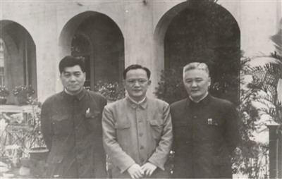 1956年,张平(右)在广州与严亦峻(左)、舒自清筹办“出口商品展览会”事宜