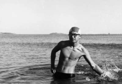 有时吃了中午饭,晚上正好有场新电影,还想留我吃晚饭,可是相对枯坐岂不尴尬,于是又要找些其他由头,比如“陪”他一起去游泳。翻过海校后面的小山,有一个相当漂亮的海湾,沙滩平整,岩石嶙峋,海浪轻柔,真是游泳的好地方。这是海校师生日常进行游泳训练的专用地界,应属军事禁区,星期天一个人都没有,在这里击水搏浪,痛快极了!