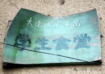 老食堂的牌子应当算是文物了。可惜不知道“大连铁道学院”的校名是谁题写的,我们的校徽、信封、信纸上面都是这样的笔迹。(摄于2006年6月)