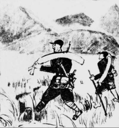 当时没有公路,都是崎岖的羊肠小路,为了赶路,结果一看河对岸,也有一只火把在行进,是国民党的川军,去增援泸定桥。要是让国民党的川军增援过去,还怎么拿下泸定桥。红军决定也拿火把往前奔,终于,川军在下大雨的时候受不了了,于是到了一个村,就住下了,准备过一晚上,但是红军没停脚,一直往前狂奔。终于在第二天早晨,赶到泸定桥了。
