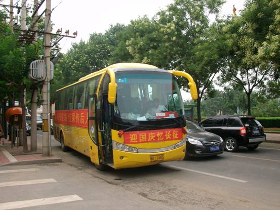 因为他们的人还没有到齐,客车还没来,就聊了起来。他们先去韶山看了毛主席故居,然后上井冈山,沿着当年红军长征路线,走到延安,又到西柏坡进的北京。一路上所有纪念地和纪念馆全看了。他们自带帐篷、炊具和米菜,风餐露宿,尽量自己解决饮食。为了安全只能携带小型煤气罐,一旦遇到罐不着气的时候就嚼干馒头吃咸菜喝生水。尽管不是吃草根树皮,但饿肚子是常有的。他们走到哪里都受到热烈欢迎,地方政府都给他们盖章留念。方才她就是等着人家给盖章才让我久等的。她还讲了上午的活动内容和收获,我听了为他们高兴。由于受他们的启发,我向他们介绍了同样是在宣传毛泽东思想的毛泽东旗帜网和网。他们上网的不多,对网站也不怎么接触。我劝他们回去看看这两个网站。同时,我还向他们介绍了革命老前辈马宾老人,讲了马老对农民的关心,讲了马老对毛主席的一片忠心和对社会主义道路的挚着以及对共产主义的信念,建议他们去拜访马老。校长说等他们的书记回来商量商量。但是书记回来时她就告诉我,天通北苑那边北京隆德全公司的活动时间不能变化,没有时间安排了,觉得很遗憾,只能以后再来的时候安排了。我赶紧给校长拍了照,给他们的两辆大客车拍了照,就想到此结束了我的采访;但是仍觉得好像还没深入进去,于是就上车跟随下去了。