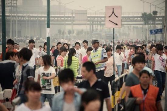 郑州富士康共分三个厂区,在组装手机最火热的时节,航空港厂区里聚集着超过20万名“普工”,几乎相当于一个县城的人口;在面积稍小的出口加工区厂区,绕着工厂步行一周,也需要一个小时。
