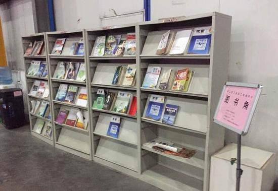 富士康郑州加工区厂区的图书角,只有30本左右的书籍。图/易方兴
