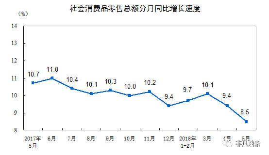 第三和第四条由于现在还没有进入下行周期,所以体会尚不明显,但是民众的六个钱包显然掏得差不多了,用在衣食住行上的钱就不够了。这里可以看看社会消费品零售总而增速的不断下滑趋势。