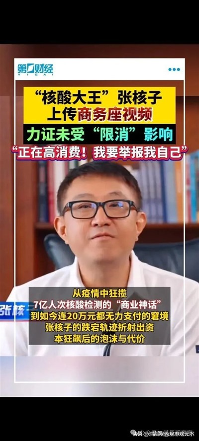 我又上网查了一下,的确是真的,这一消息不仅仅是自媒体报道了,而且主流媒体也报道了。有图、有文字、有日期等。如《界面新闻》2月11日报道的标题是“张核Z及核Z基因被限消”。并附有《深圳南山区人民法院的限制通令》,白纸黑字很清楚。