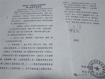 李松元的这些说法,能从2021年12月6日“武陟县广济路南北延段项目竣工结算造价咨询审核报告”、以及武陟县财政局评审中心在2022年4月13日向武陟县政府提交的一份“武陟县广济路南北延段项目竣工结算审核意见”中得到印证。