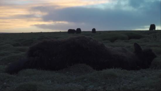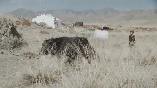 ◉这天,一只小牛犊站不起来了,只能侧卧在草地上,叫声也越来越弱。母牛一直不肯离开,一边吃草,一边隔着大概两米的距离回应着它。直到深夜,母牛依然守护着它,到它身边喂奶。但娘娥加的父亲查看了小牛犊的状况后,已经决定将它送往冬牧场。在那儿,这只小牛犊可以给他们换回一些保险赔偿。图片:焦小芳