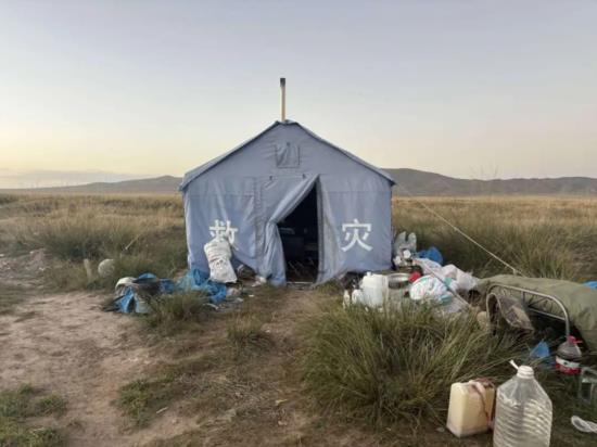 这群牧民几乎都住在救灾帐篷里,远离家庭。帐篷里的家具很简单:一张床、一个炉子,简单的桌子架子上是生活用品、方便面和饼干。帐篷跟着羊群迁徙。王生在几十公里外的村里有个房子,因为长时间无人居住,早已破败,“哪有钱修”。