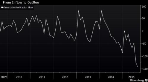 彭博汇总的数据显示,8月份估计有1,416.6亿美元资金流出中国,刷新了7月份创下的1,246.2亿美元的纪录。