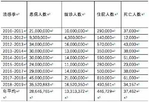 美国每年几千万人得流感,11-12流感季接近三个人一个害病。每年死亡数万人,17-18流感季死了6万多。